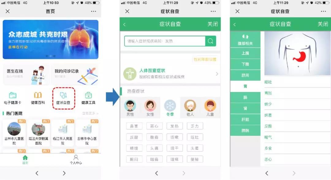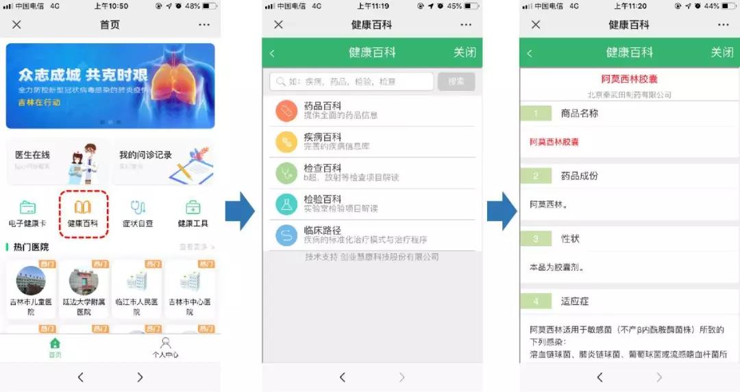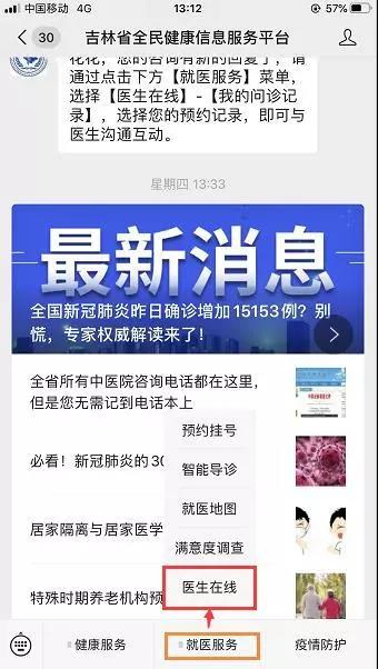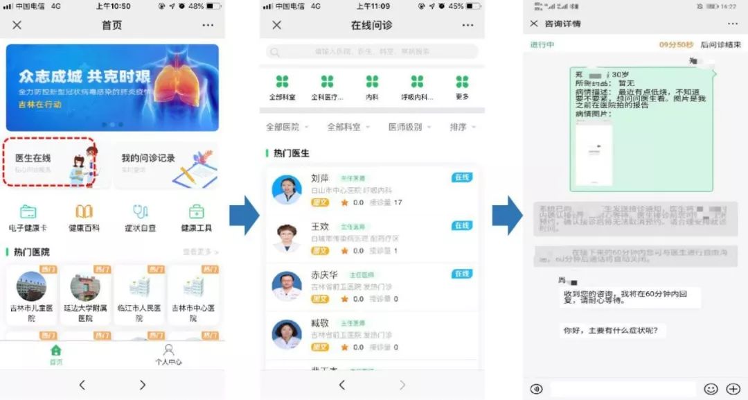 2020年2月17日,省全民健康信息服务平台发布“医生在线”操作指南,指南涵盖“关注公众号”“医生在线”“我的问诊记录”“电子居民健康卡”“健康百科”“症状自查”“健康工具”“热门医院及医生”“重点医院专区”等九个便民服务功能模块。