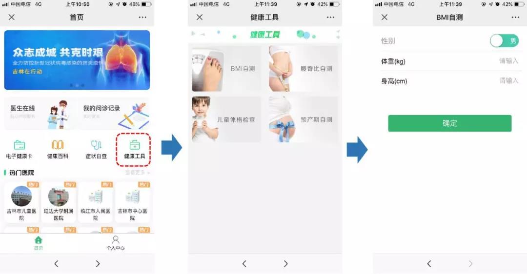 健康工具包含系列常用的健康小工具,居民可通过这些便捷工具居家自我检测。