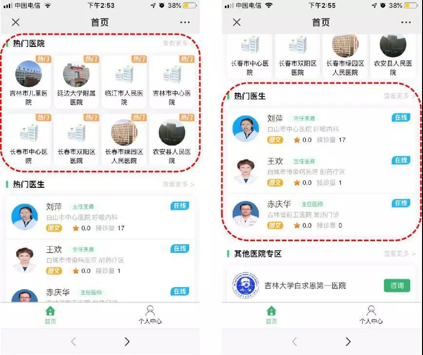 热门医院包含疫情期间居民最常访问的医院和推荐医生的医生列表,方便用户选择医院及医生。