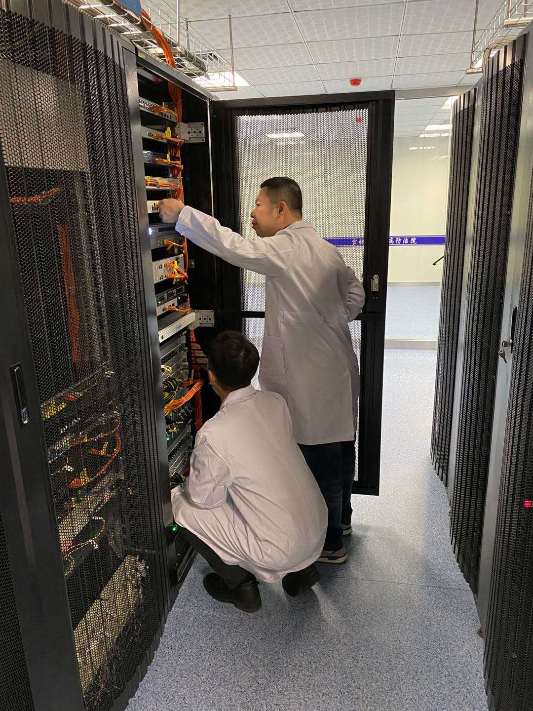 省人民医院远程医疗数据中心工程师正在调试网络。