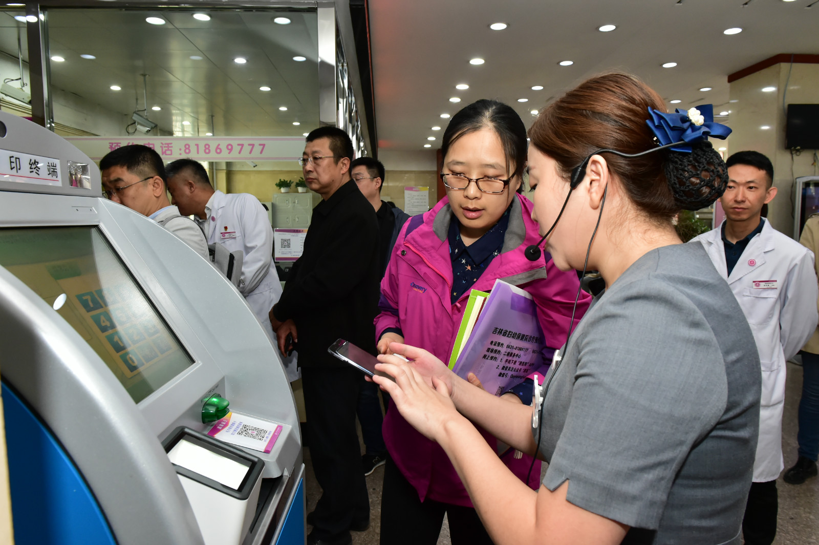 吉大二院是我省目前用卡量最大的医院。调研组在吉大二院现场查看门诊用卡环境,医院信息中心主任陈彦东详细介绍了患者用卡流程。调研组在体验门诊自助机使用后,提出要统一设计自助设备显示界面,优化使用流程,使患者在无感状态下实现就医信息技术功能。